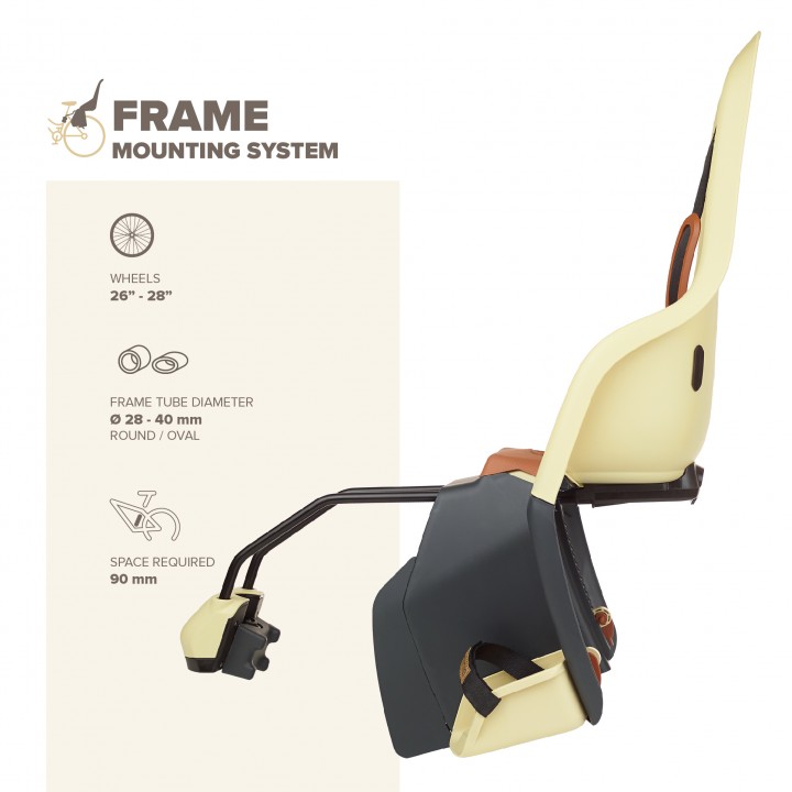- Легко переставлять сиденье между велосипедами, приобретя второй держатель рамы.