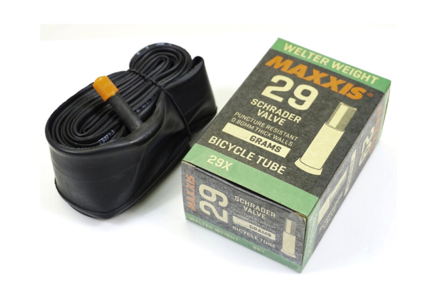 Велокамера Maxxis WelterWeight для покрышек 29" имеет толщину стенки 0.8 мм, что сохраняет баланс между прочностью и весом. Это самая распространенная у велосипедистов модель.
