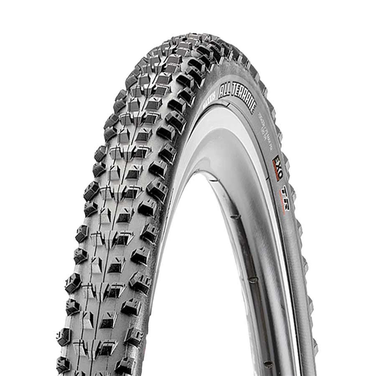 Maxxis All Terrane хорошо работает в широком диапазоне условий велокросса: от жесткого покрытия до травы и легкой грязи. Открытый рисунок протектора убирает грязь, а наклонные шипы снижают сопротивление качению.